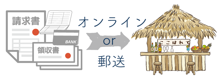 A.証ひょうの預り、帳簿の納品共に基本的に郵送・メール等での取り扱いとなります。※郵送の場合、返送の費用もお客様負担でお願いしています。